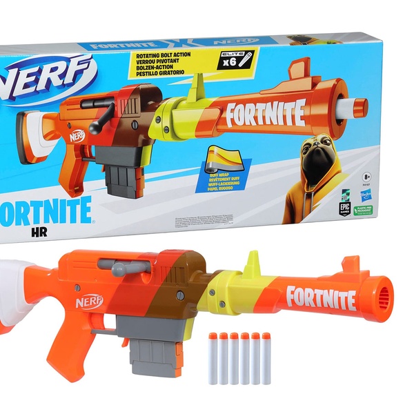 Featuring a rotating priming bolt and a customizable look, this Nerf fortnite HR Blaster is ideal for action-packed fun for kids 3 and above