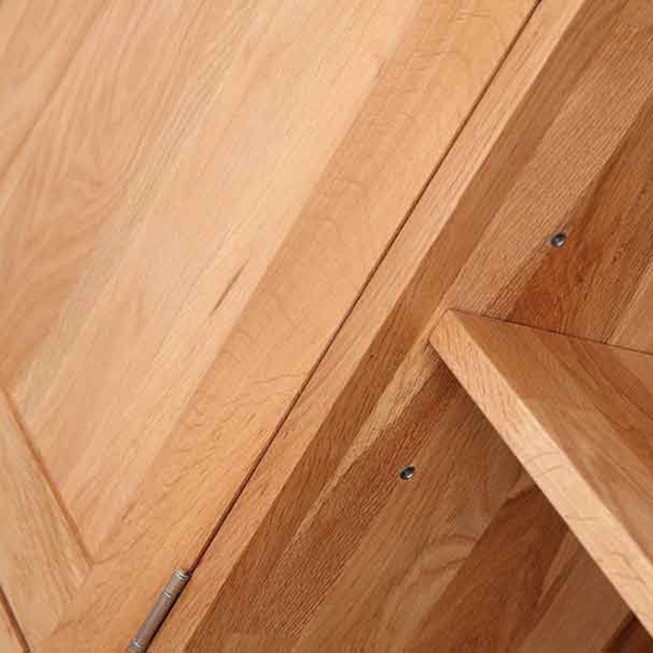 - Made of 100% solid American oak throughout including backs to all cabinets, drawer bases and even the runners the drawers sit on