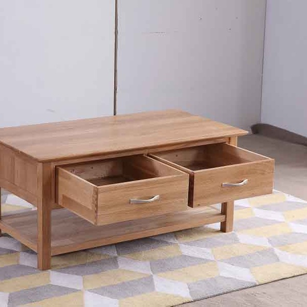 Made of 100% solid oak, including backs and drawer bases, this living room furniture collection can give a modern, elegant look to any room
