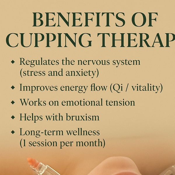 A restorative treatment combining approximately 35 minutes of cupping therapy with 25 minutes of massage. Cupping works by lifting the tissue to stimulate blood flow, reduce muscle tightness, and support natural detoxification. The massage element soothes muscles, improves mobility, and enhances recovery, providing long-lasting relief and relaxation.