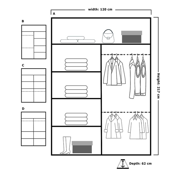 - Dimensions: 120 cm (W) x 217cm (H) x 62cm (D)