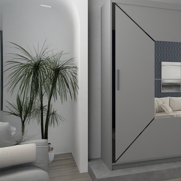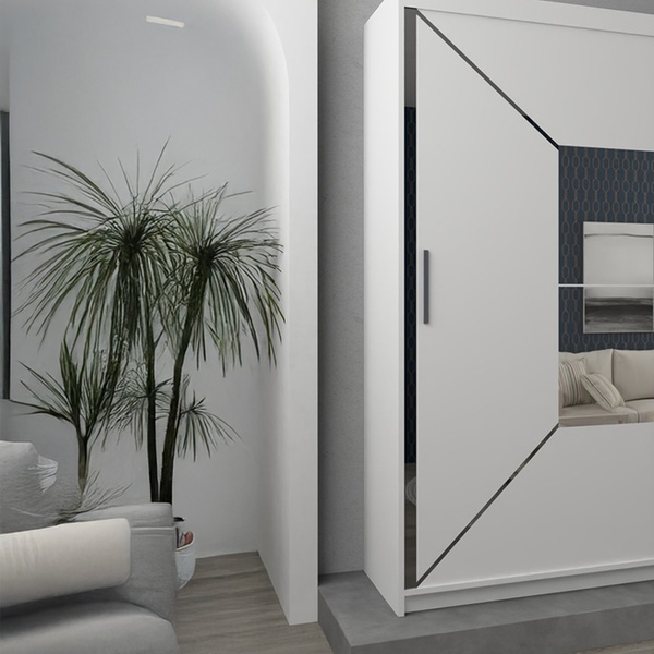 Featuring two sliding mirror doors, this wardrobe brings elegance while maximizing storage with multiple shelves and hanging rails