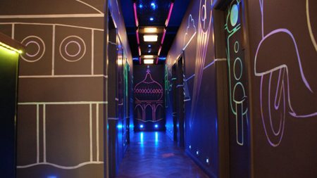 Living up to its name, this karaoke complex has Nine Rooms for all group sizes, complete with karaoke screens, glitter balls and colour-changing lighting, plus ample wigs and air guitars. More than 13,000 songs, including old classics and fresh releases, are on hand to transform people into pop stars. There's also room service at the push of a button, while corridors are emblazoned with neon line-drawn murals to entice singers out of their shells.