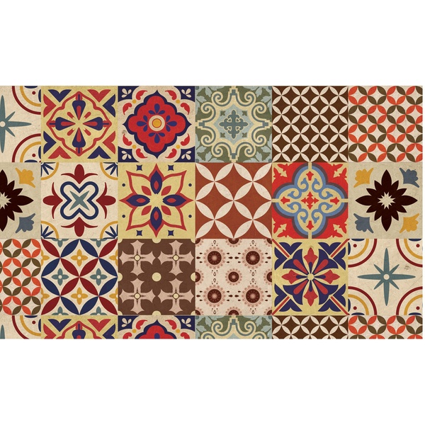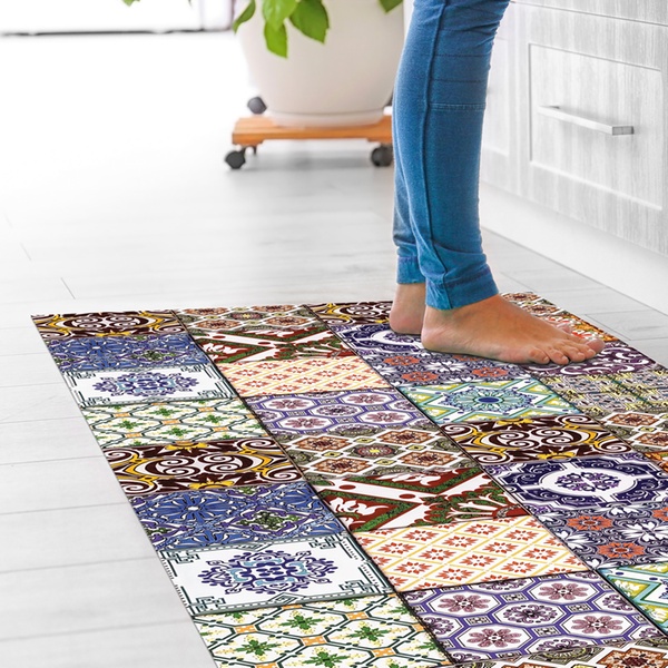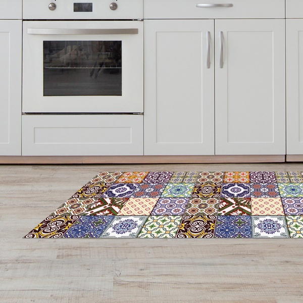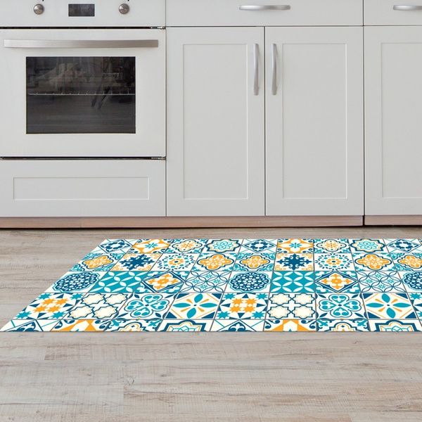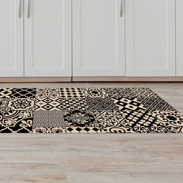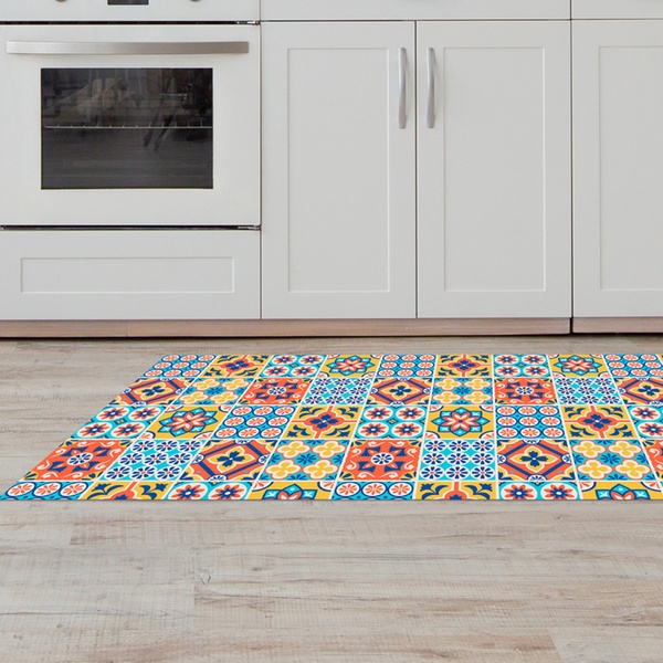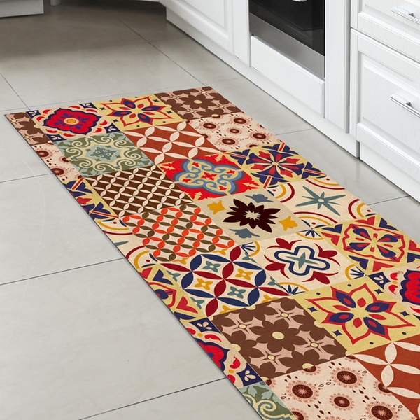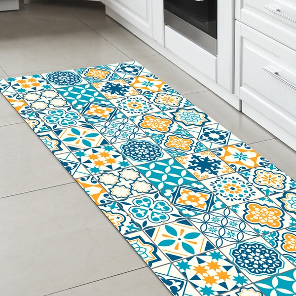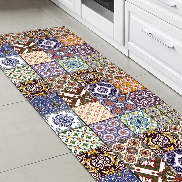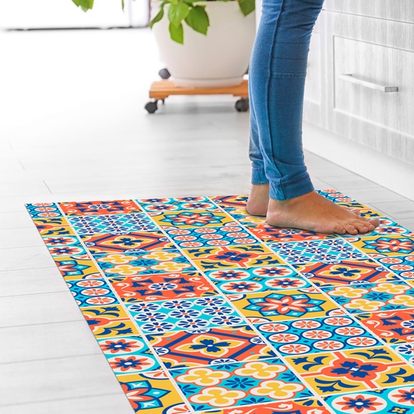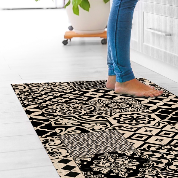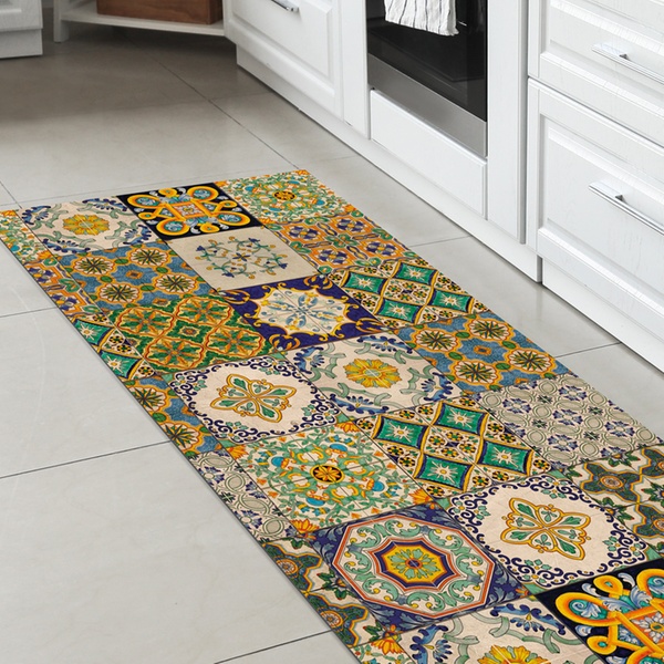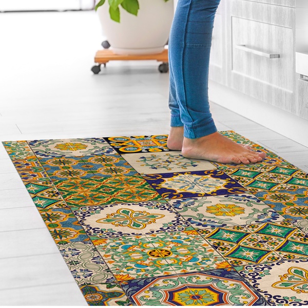 Featuring a non-slip PVC backing and a stain-resistant polyester surface, it stays stable underfoot and maintains its vibrant colours even with frequent use and washing