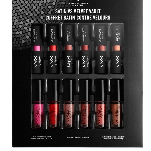 - Set includes six mini Velvet matte lipsticks (2.5g) and six mini Slip Tease oils (1.6ml)