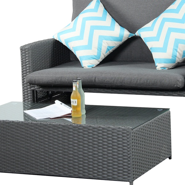 - Materials: rattan, steel frame, polyester cushions