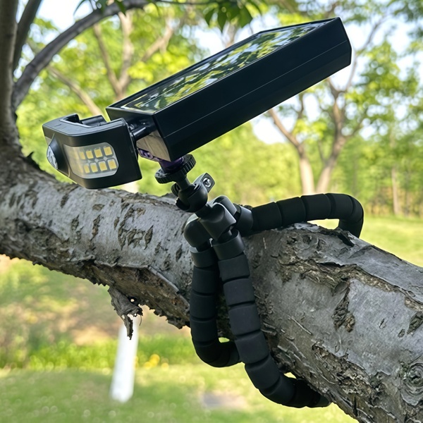 - Solar-powered with a built-in panel for automatic charging during the day.
