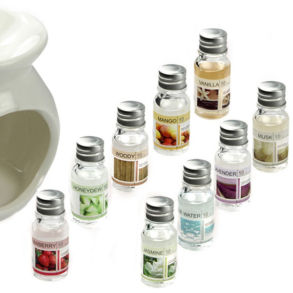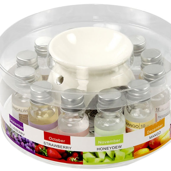 - The set includes one white oil burner and 12 different oils