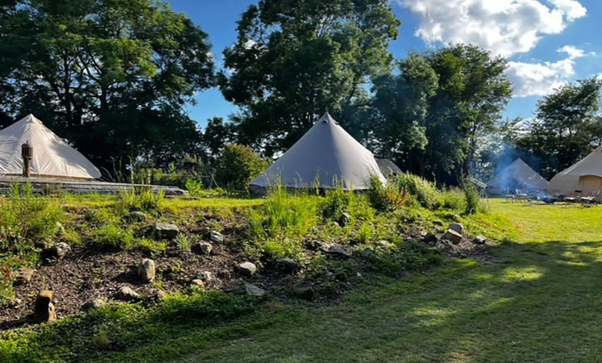 One-Night Stay in a Luxury Bell Tent for Four People Includes all bedding, so guests can simply arrive and unwind.