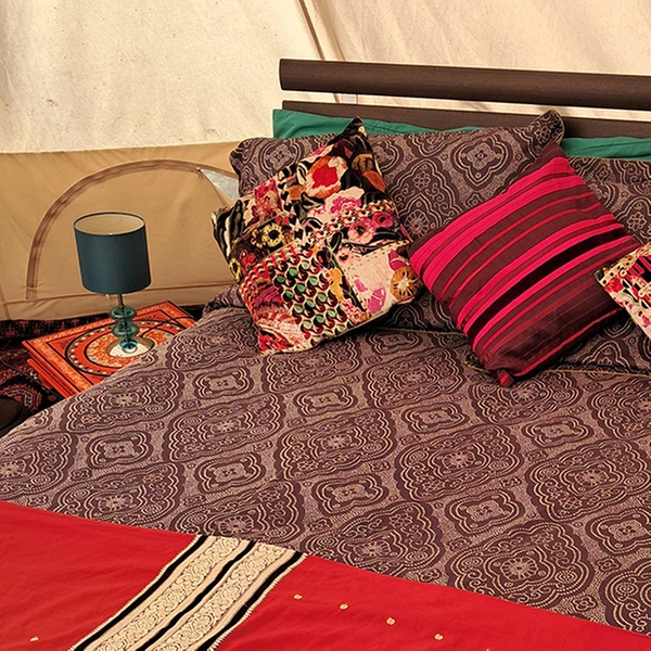 Experience boutique glamping in a fully furnished luxury bell tent with bedding and cooking facilities nestled in the tranquil Suffolk countryside