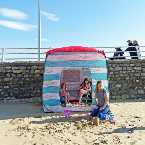 A great alternative to a wooden beach hut, this portable pop-up tent is available in three colours