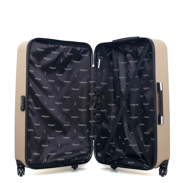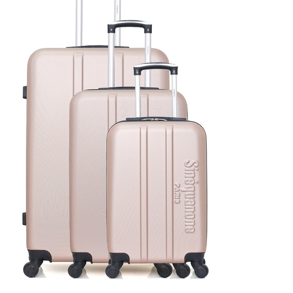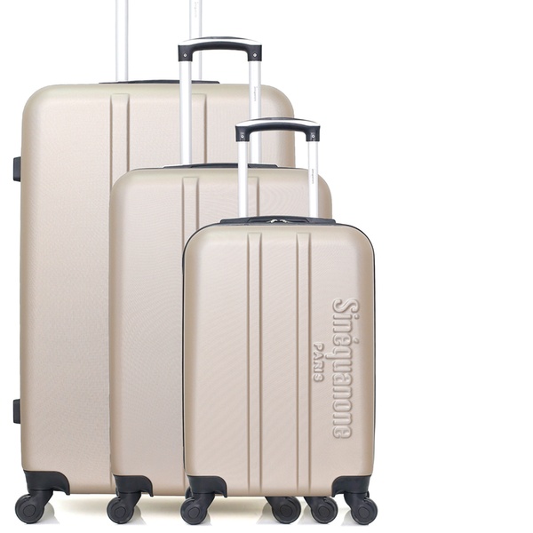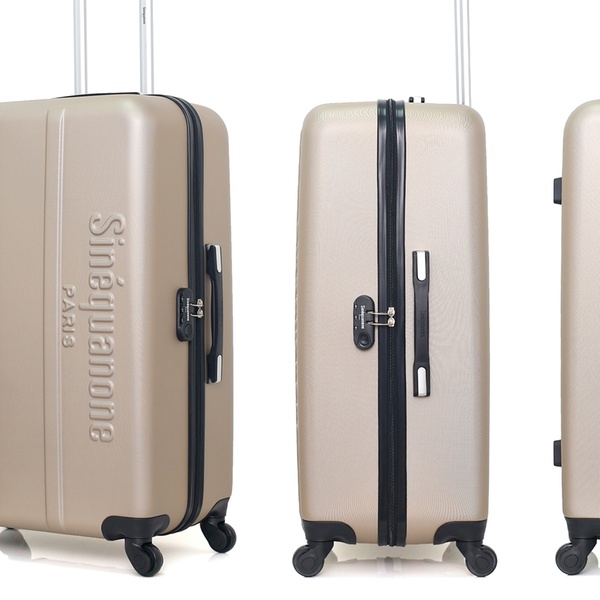 Available in three sizes to suit different travel needs, these suitcases feature a convenient telescopic handle with push-button