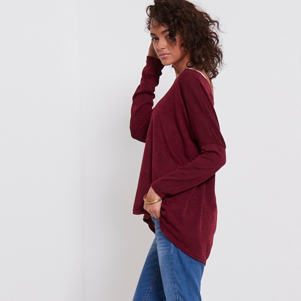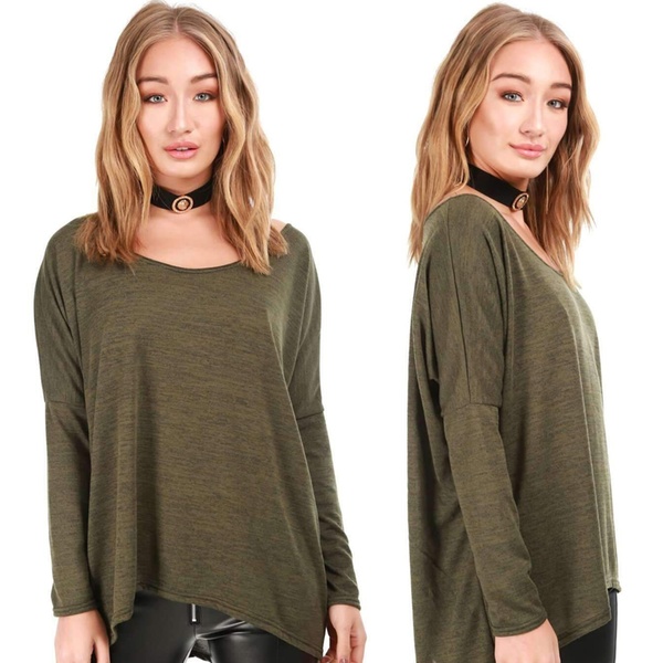 Ideal for everyday wear and parties, this soft and stretchy oversized top features long sleeves and an off-shoulder design