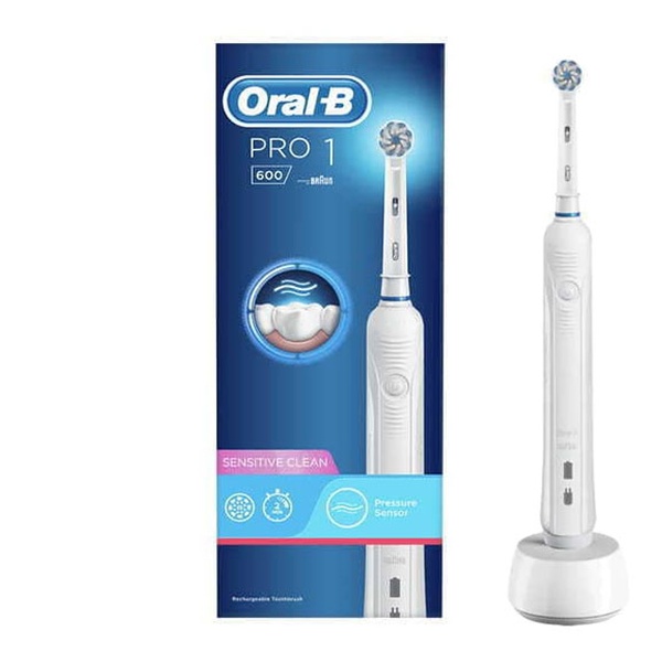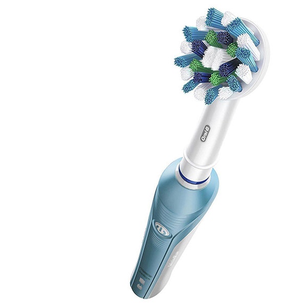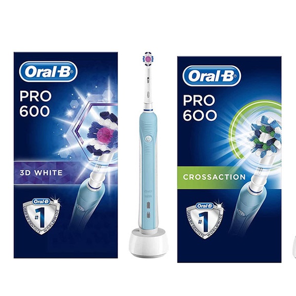 The Oral-B Pro 600 cross action electric rechargeable toothbrush provides a clinically proven clean versus a regular manual toothbrush