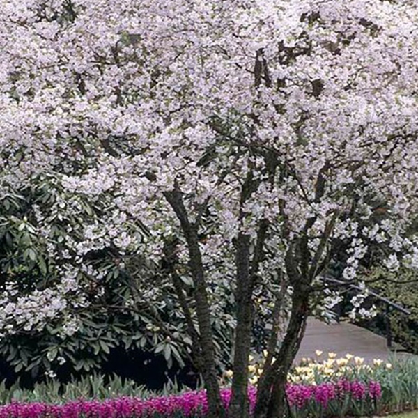 - Available cherries: Prunus Accolade (pale pink flowers), Prunus x cistena (white flowers), Prunus x subhirtella Autumnalis (white with pink flushed centre)