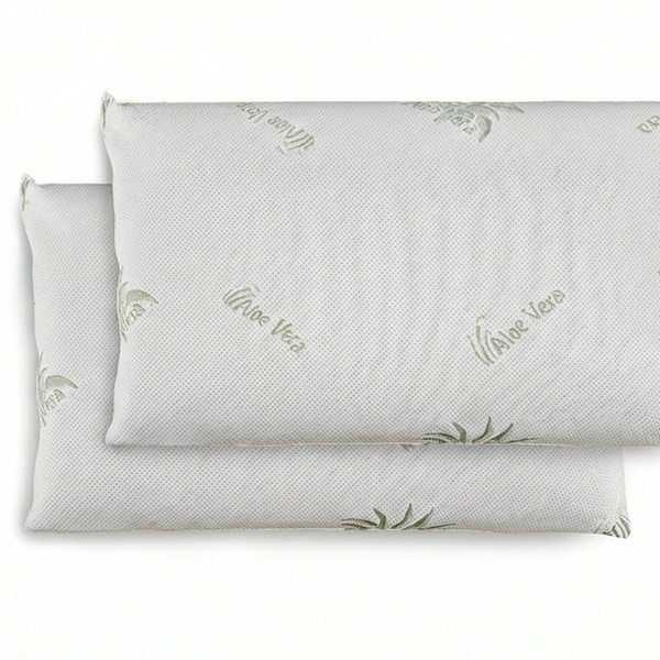 A pair of ergonomic, eco-friendly memory foam pillows with breathable, anti-mite structure and removable zippered covers, designed to support the head and neck in all sleeping positions while maintaining shape and hygiene over time