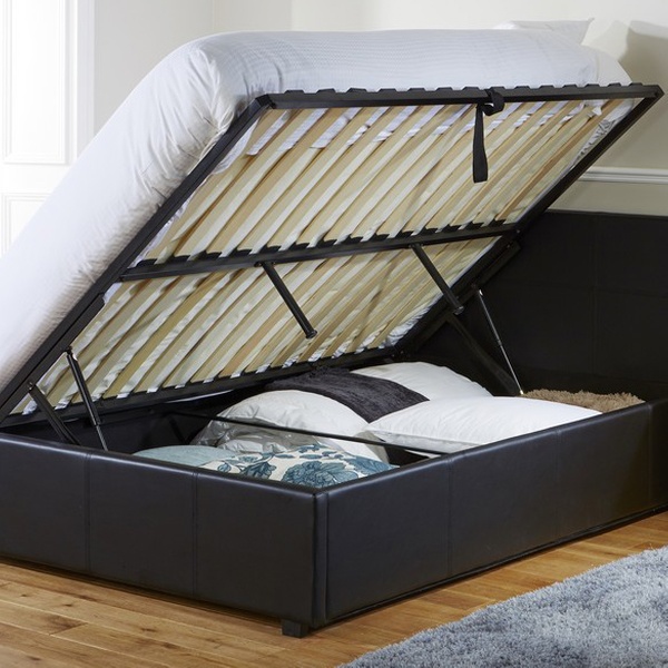 Featuring an ample storage space underneath, this simple-design bed features sprung slats for added comfort and longer mattress life