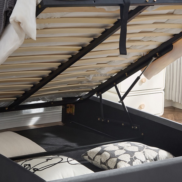 Crafted from sturdy plywood and eucalyptus wood, this ottoman bed frame promises reliable support and stylish storage solutions