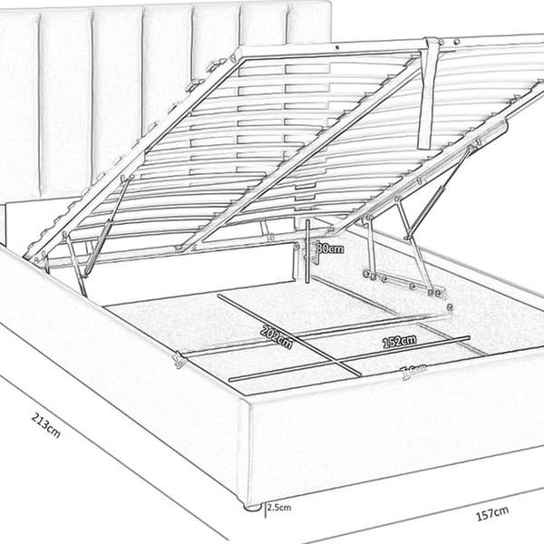 • Sizes: double 200 x 147 x 118 cm, king 200 x 162 x 118 cm