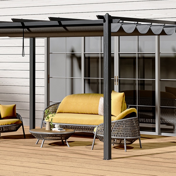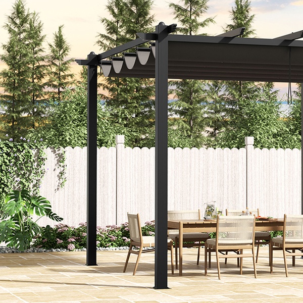 Designed for outdoor entertaining, this adjustable canopy pergola offers sun protection while enhancing any patio or garden space