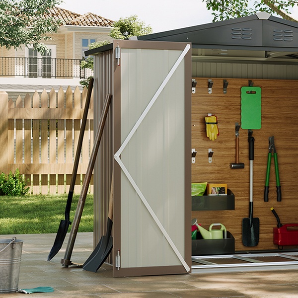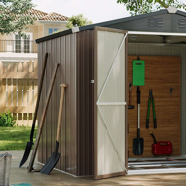 Keep tools secure and organised in a sleek, lockable metal shed, featuring durable construction and smart ventilation for freshness