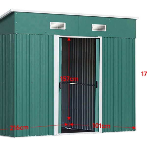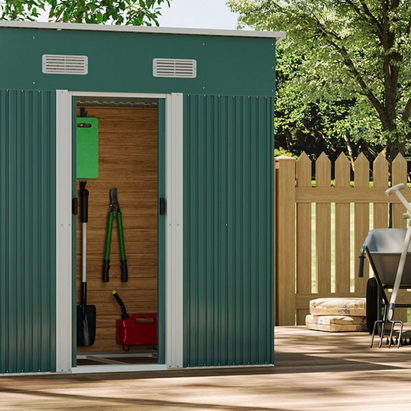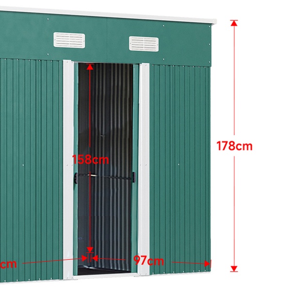 • 131cm x 238cm Dark Green Compact Metal Storage Shed