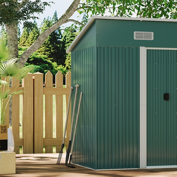 Compact Outdoor Metal Garden Storage Shed – Lockable Double-Door Tool Shed with Vents – Green or Charcoal Black