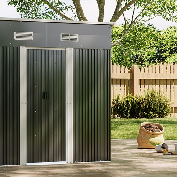 • 121cm x 194cm Charcoal Black Compact Metal Storage Shed