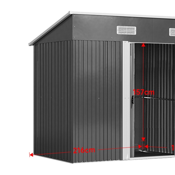 • 131cm x 238cm Charcoal Black Compact Metal Storage Shed