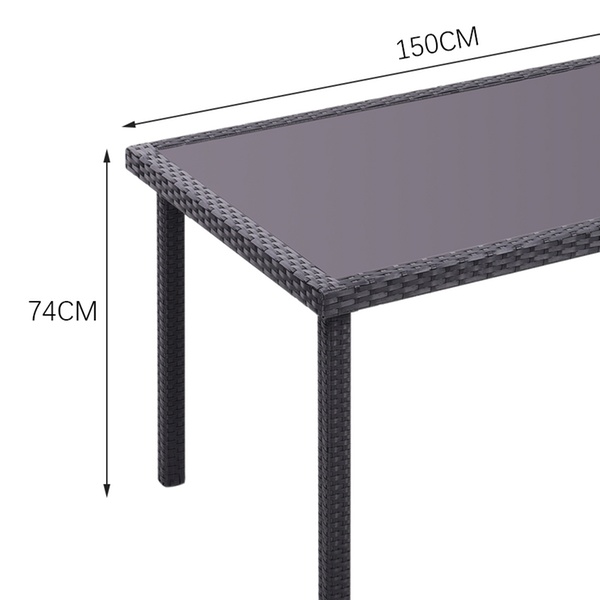 - Tempered glass tabletop, 5 mm thick
