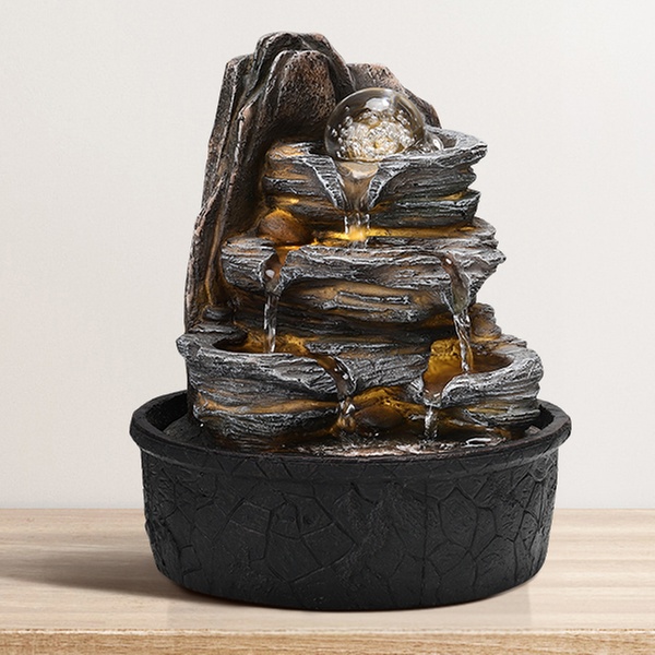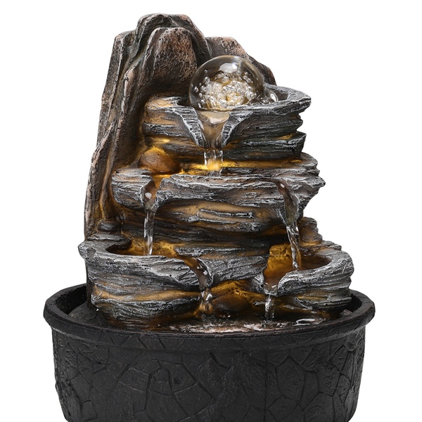 Transform any space with this enchanting LED tabletop fountain, featuring cascading tiers for a soothing water melody.