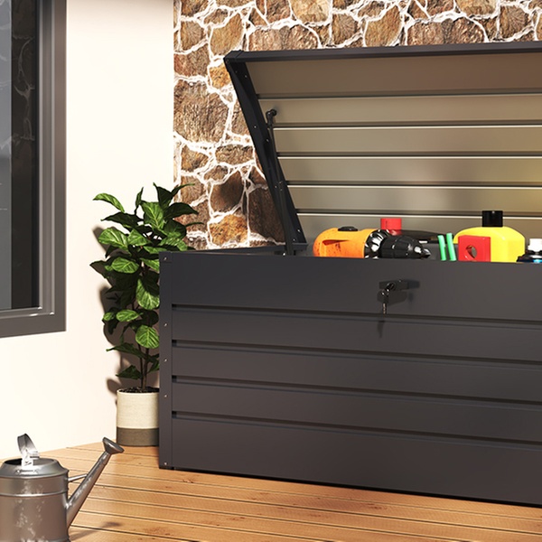 Securely store all the essentials with a sleek metal design that offers 200L or 600L of water-resistant protection against the elements.