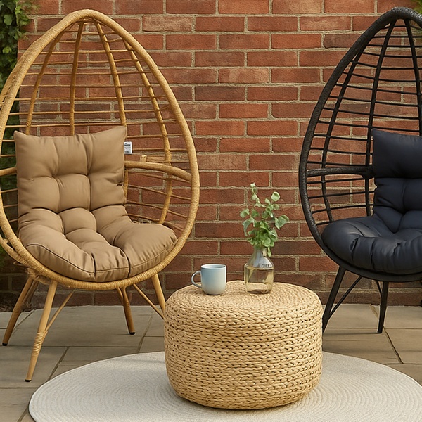 Featuring a unique teardrop shape, this outdoor rattan chair promises a blend of style and comfort for any garden setting