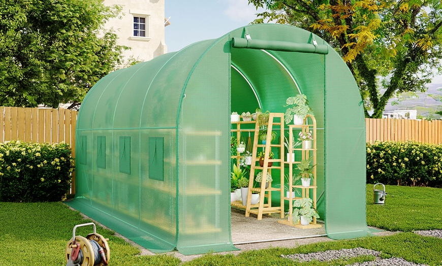 Today's Groupon offers Outdoor Walk-in Tunnel Steel Greenhouse with PE Cover, distributed by Living And Home Limited.