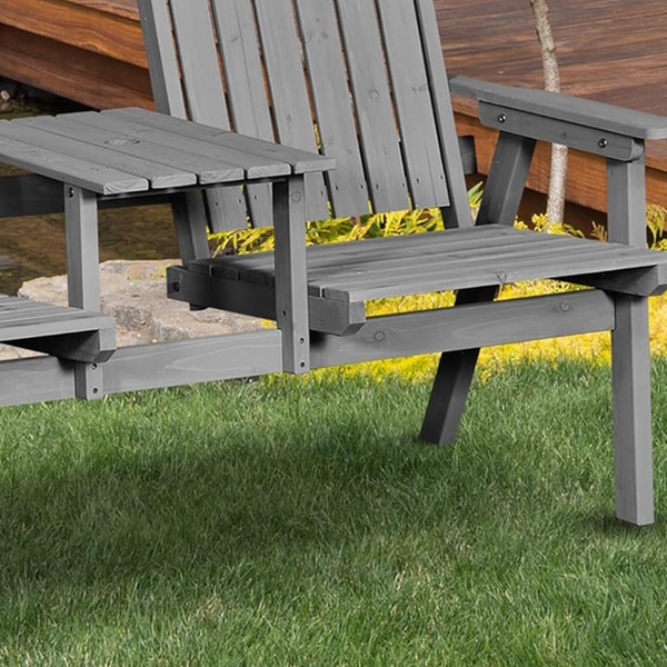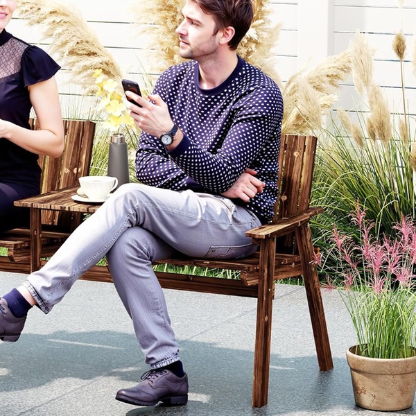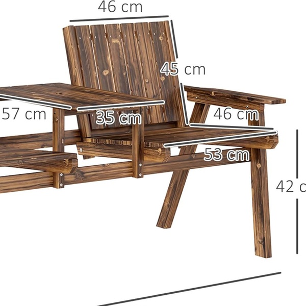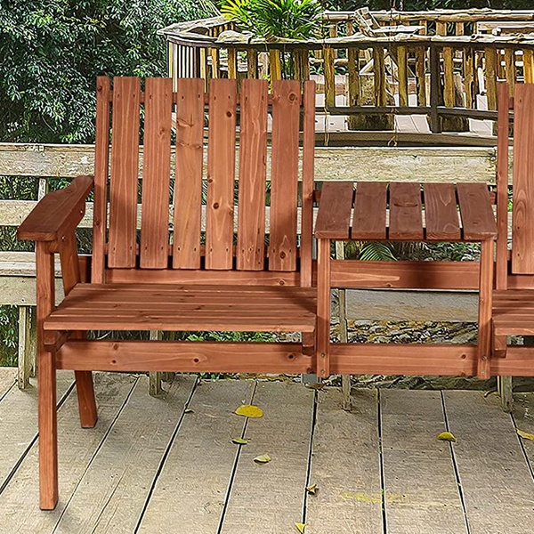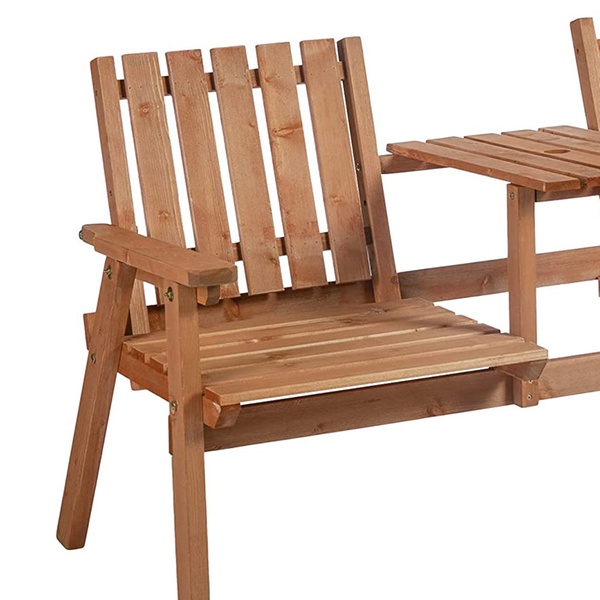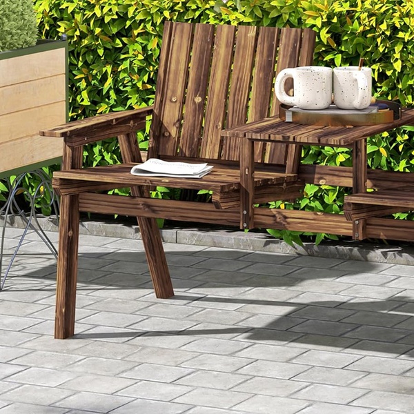 Built from sturdy fir wood, this garden bench combines durability and comfort, featuring slanted backs and a handy middle table.