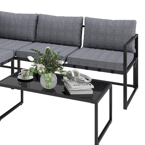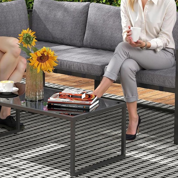 - Three-piece balcony furniture set: includes a three-seater sofa, a loveseat and a coffee table