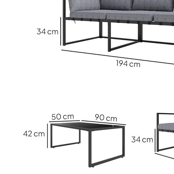 - Weight Capacity 360 kg (three-seater sofa), 240 kg (loveseat), 50 kg (table)