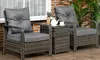 This stylish three-piece bistro set features durable PE rattan weaving, ideal for outdoor relaxation while ensuring lasting comfort