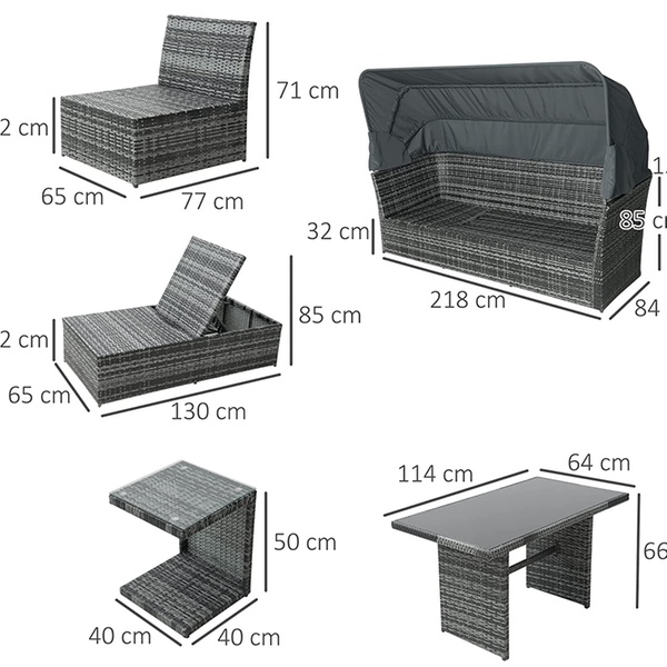 - Colour: Mixed Grey Rattan, Grey Cushion