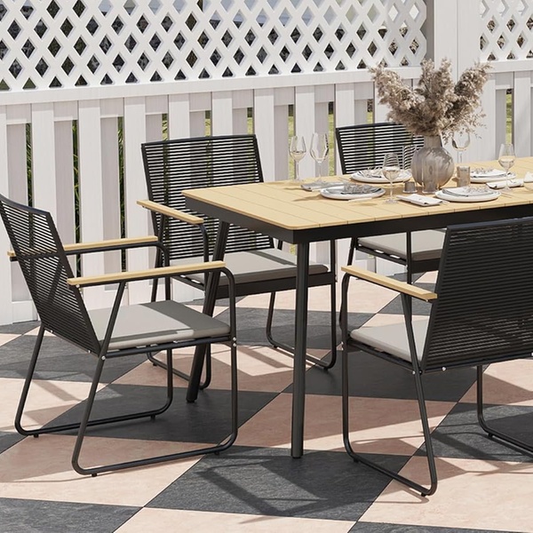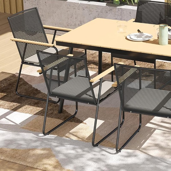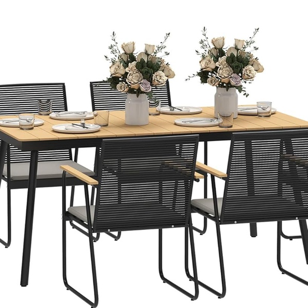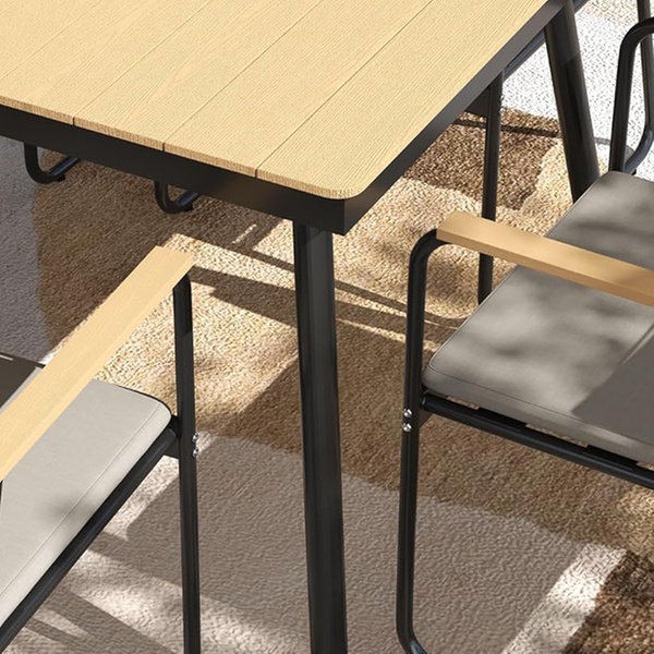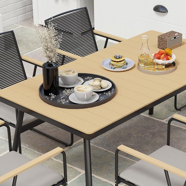 With a weather-resistant tabletop featuring a stylish wood grain finish, outdoor dining just got a chic upgrade for any patio