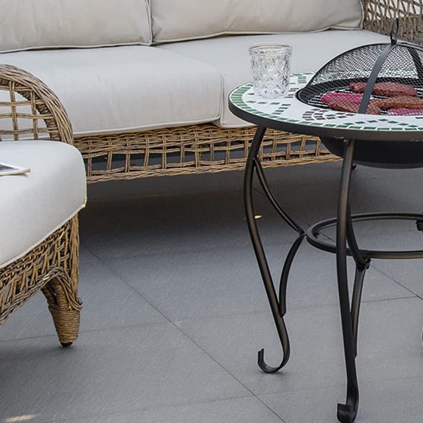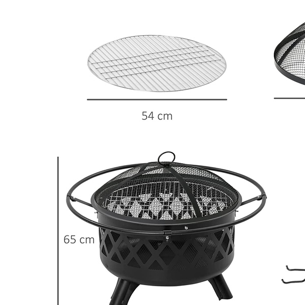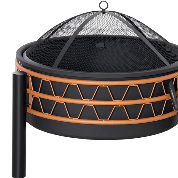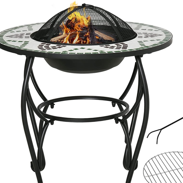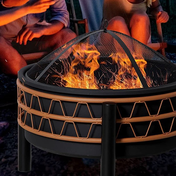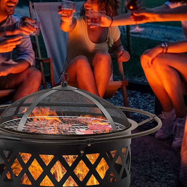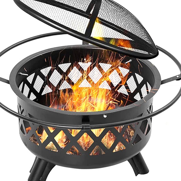 - Safety mesh lid encloses the fire to prevent sparks from flying