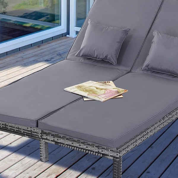 Crafted with weather-resistant wicker rattan, this stylish double lounger set ensures lasting comfort in any outdoor space