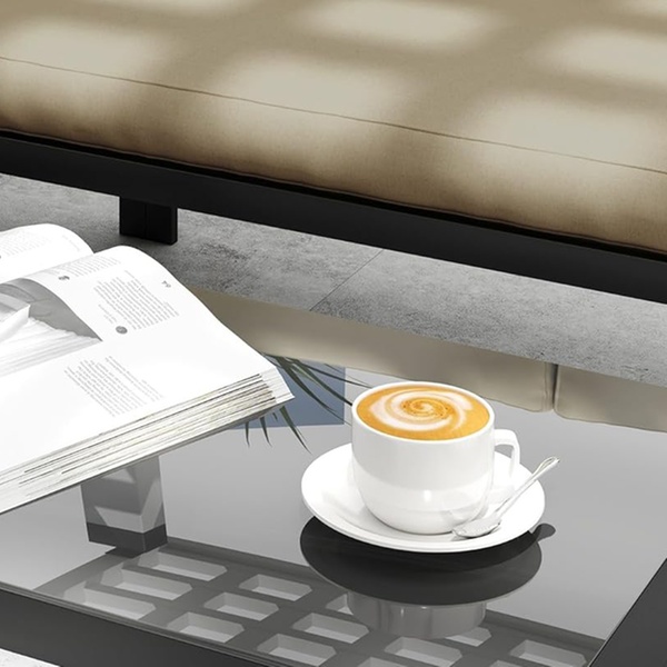 - Elegant tempered glass tabletop for a stylish finish