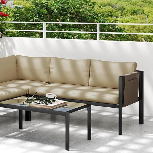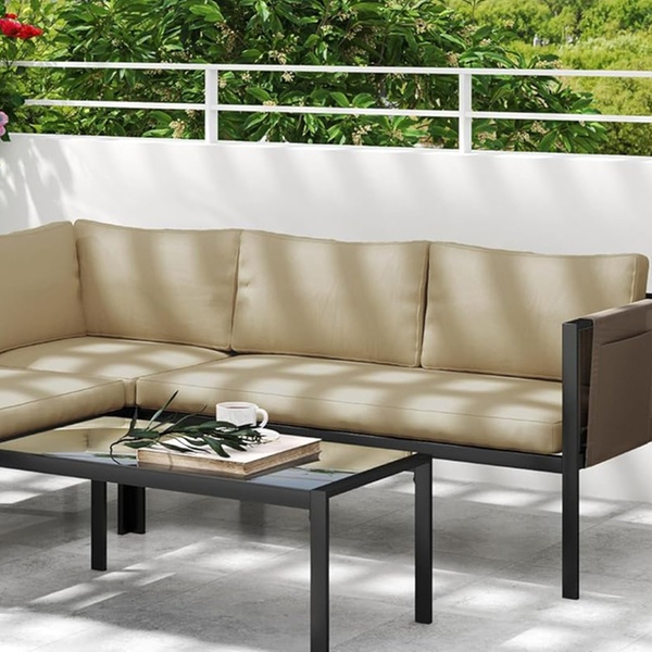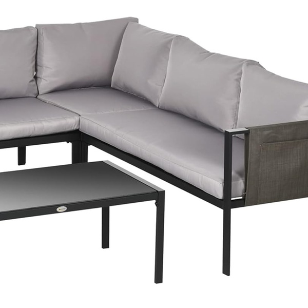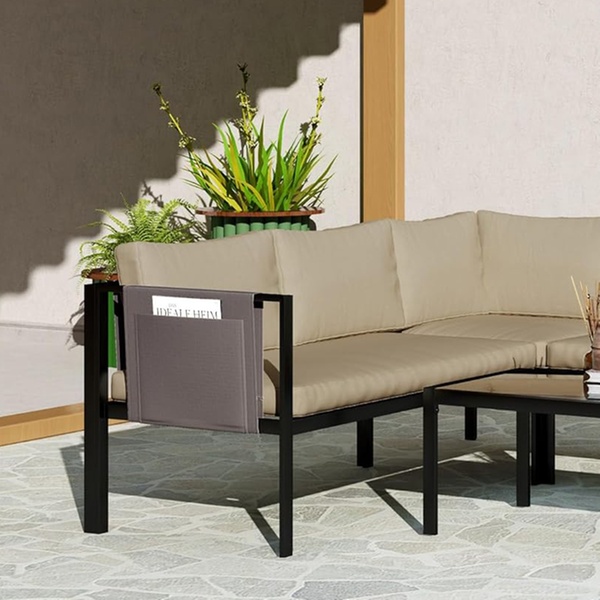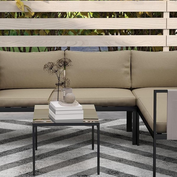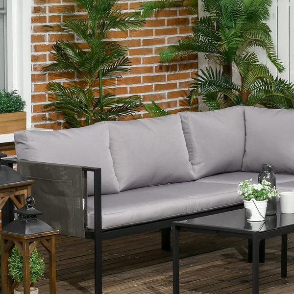 Crafted with robust powder-coated steel, this corner sofa set ensures lasting durability while enhancing outdoor elegance