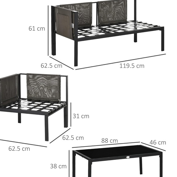 - Loveseat dimensions: 119.5cm (W) x 62.5cm (D) x 61cm (H)