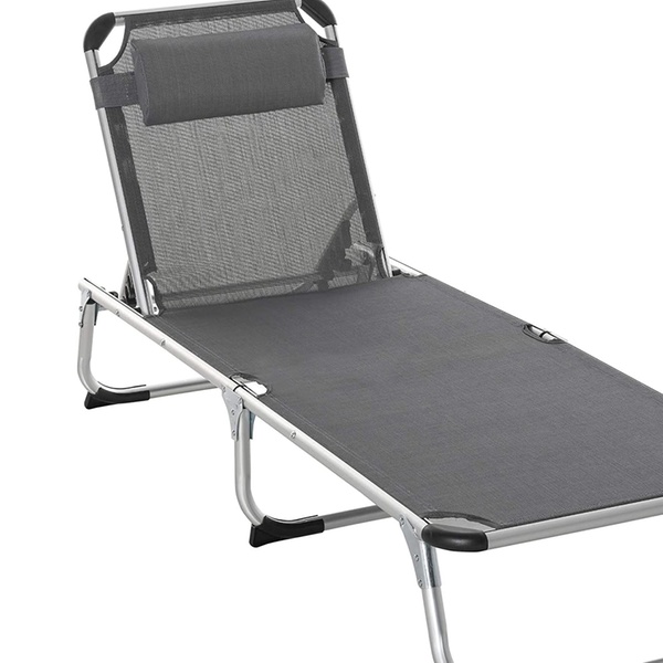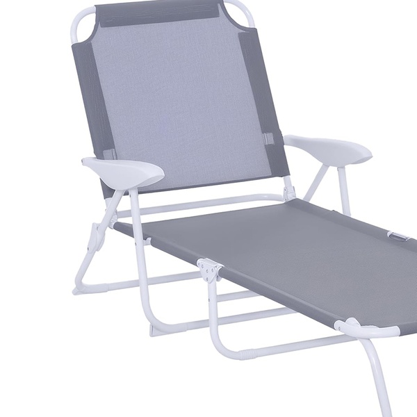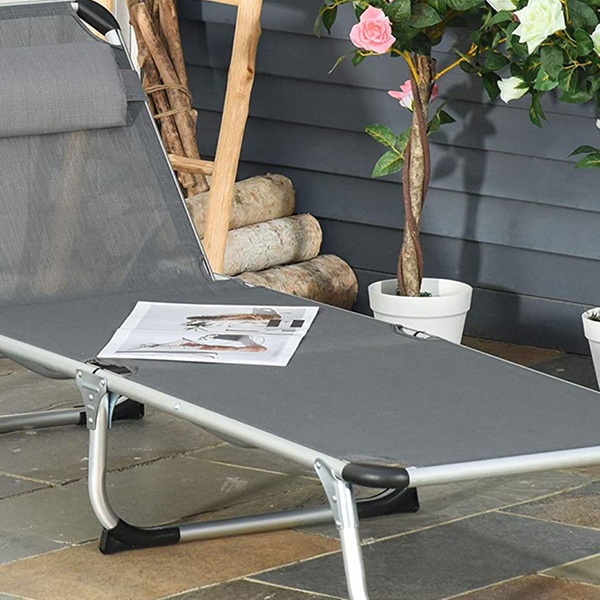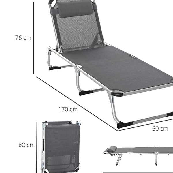 This foldable sun lounger features an adjustable backrest with four positions for ultimate relaxation during sunny days