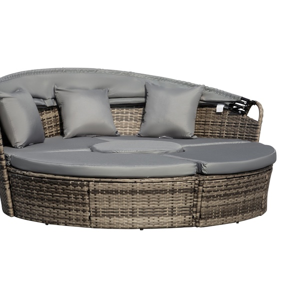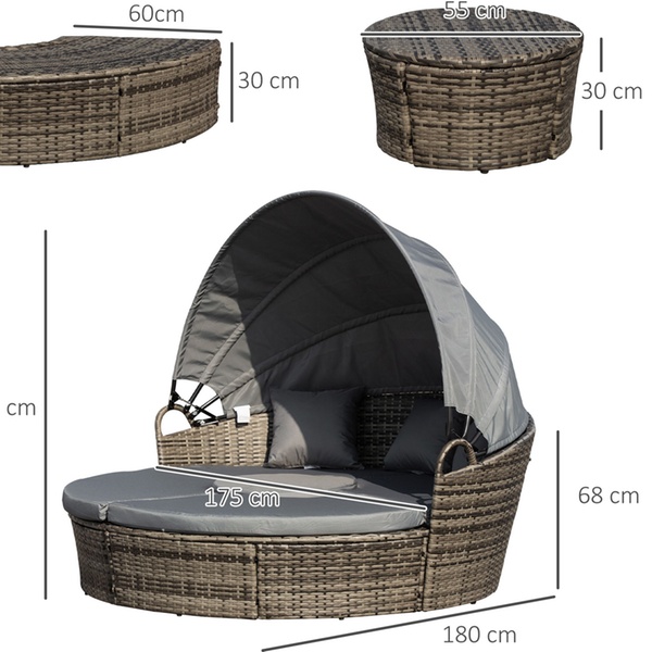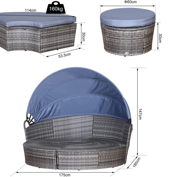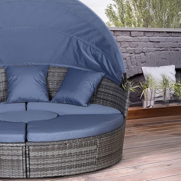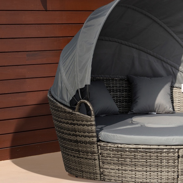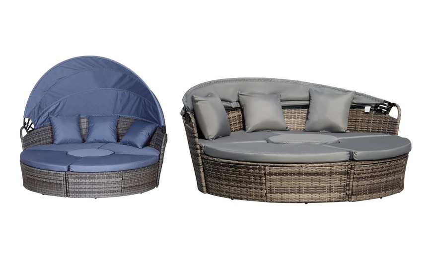 Today's Groupon offers Outsunny Garden Round Rattan Sofa Bed with Cushion and Retractable Canopy, distributed by MHstar UK Ltd.