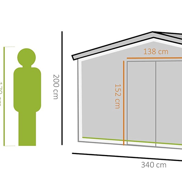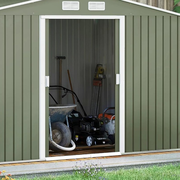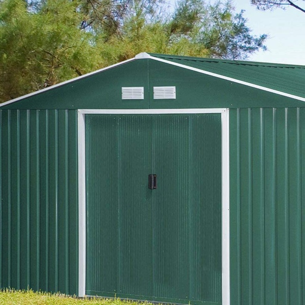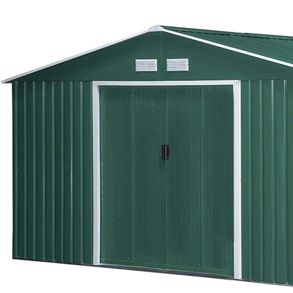 Outsunny 12.5 x 11.1ft Steel Sliding Door Storage Shed – Deep Green