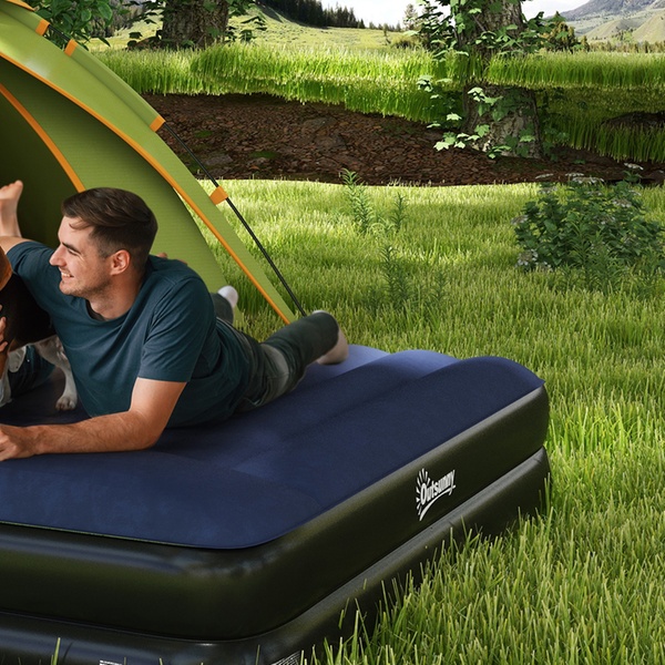 Outsunny Double Air Mattress with Built-in Foot Pump: