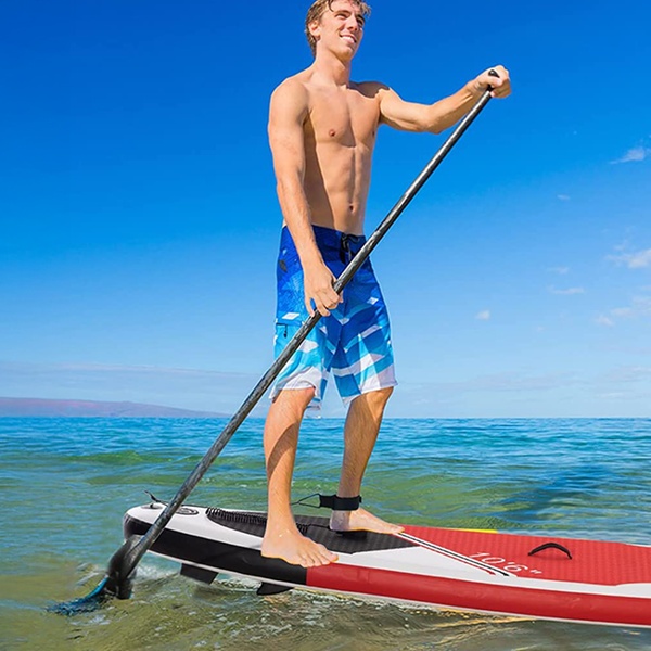 - Inflatable paddle board ideal for fishing, surfing, and paddling